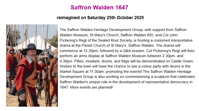 Saffron Walden 1647 reimagined on Saturday 25th October 2025